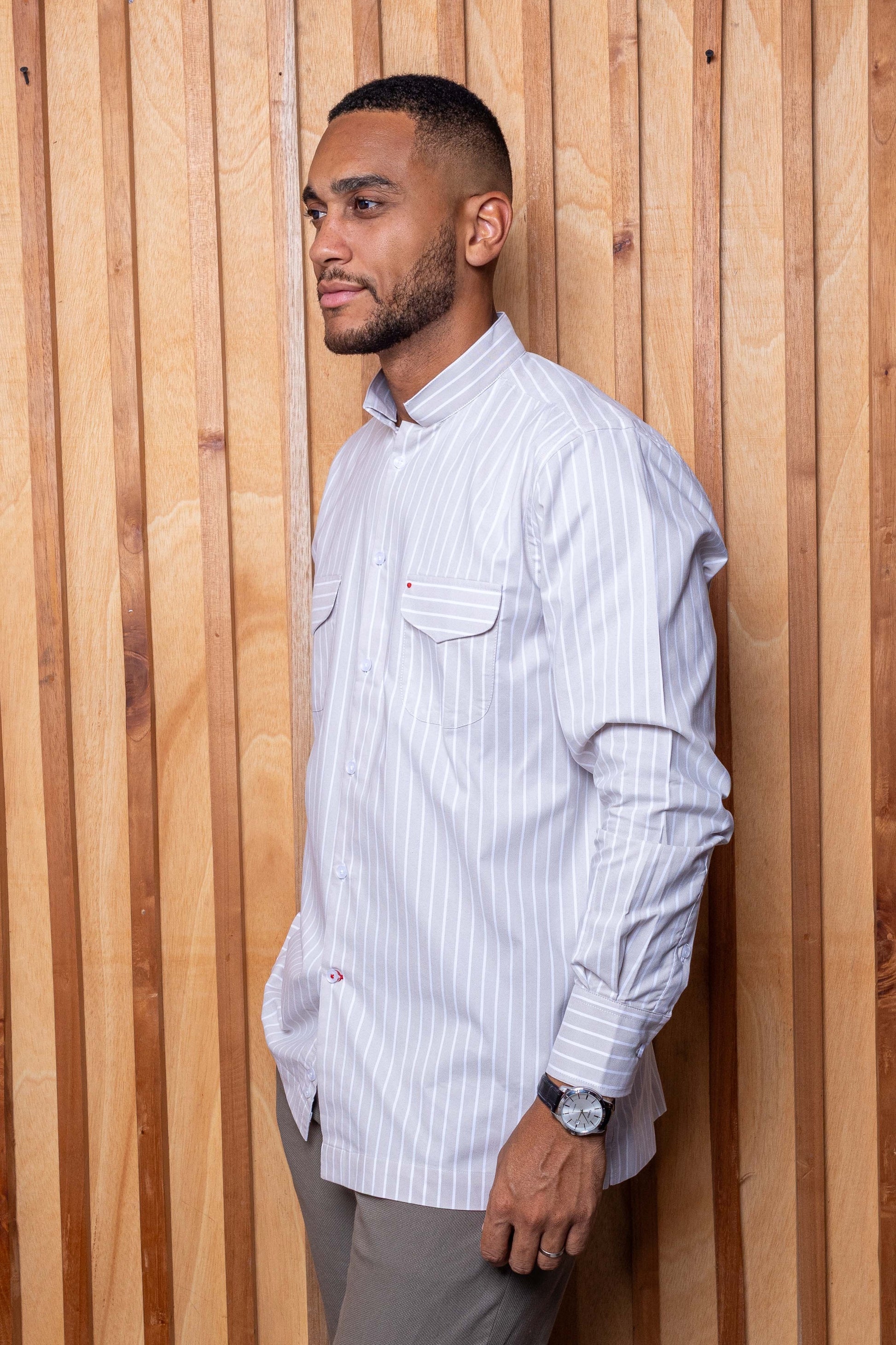 Le col inversé à deux poches à rabat revisite la chemise traditionnelle avec une approche audacieuse et structurée. Son col distinctif apporte une touche contemporaine, tandis que les poches à rabat renforcent son caractère utilitaire et affirmé.