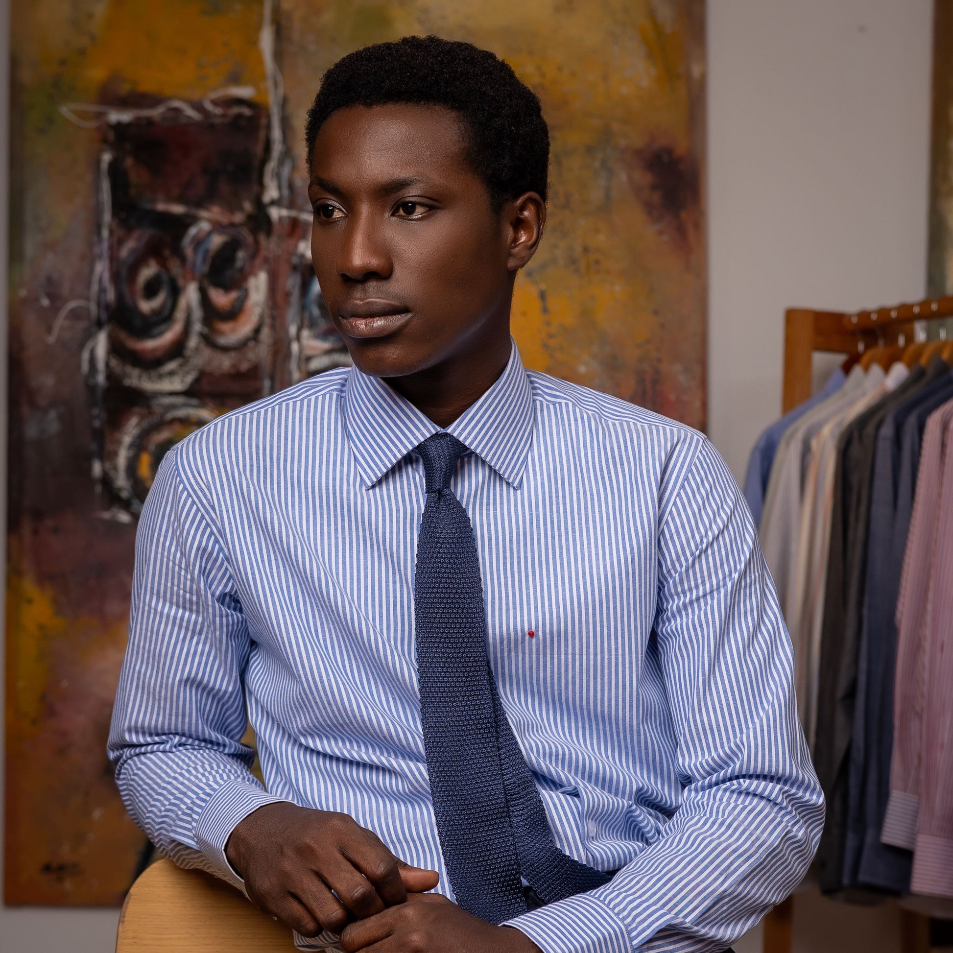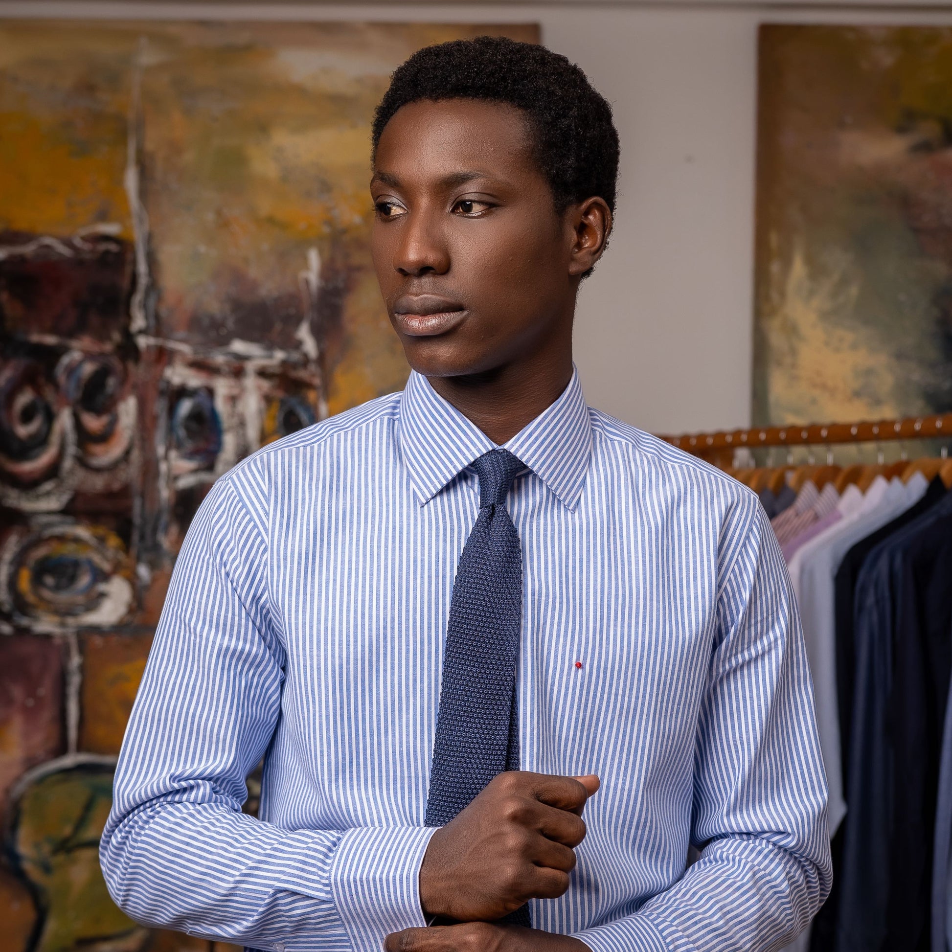 Notre signature. La chemise classique par excellence, revisitée avec une pointe de modernité dans les proportions du col. Un essentiel du vestiaire masculin, aussi bien pour le quotidien que les grandes occasions.